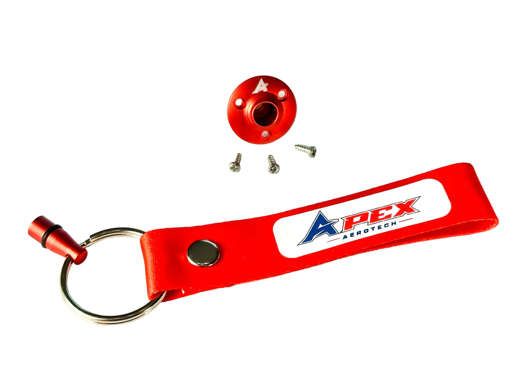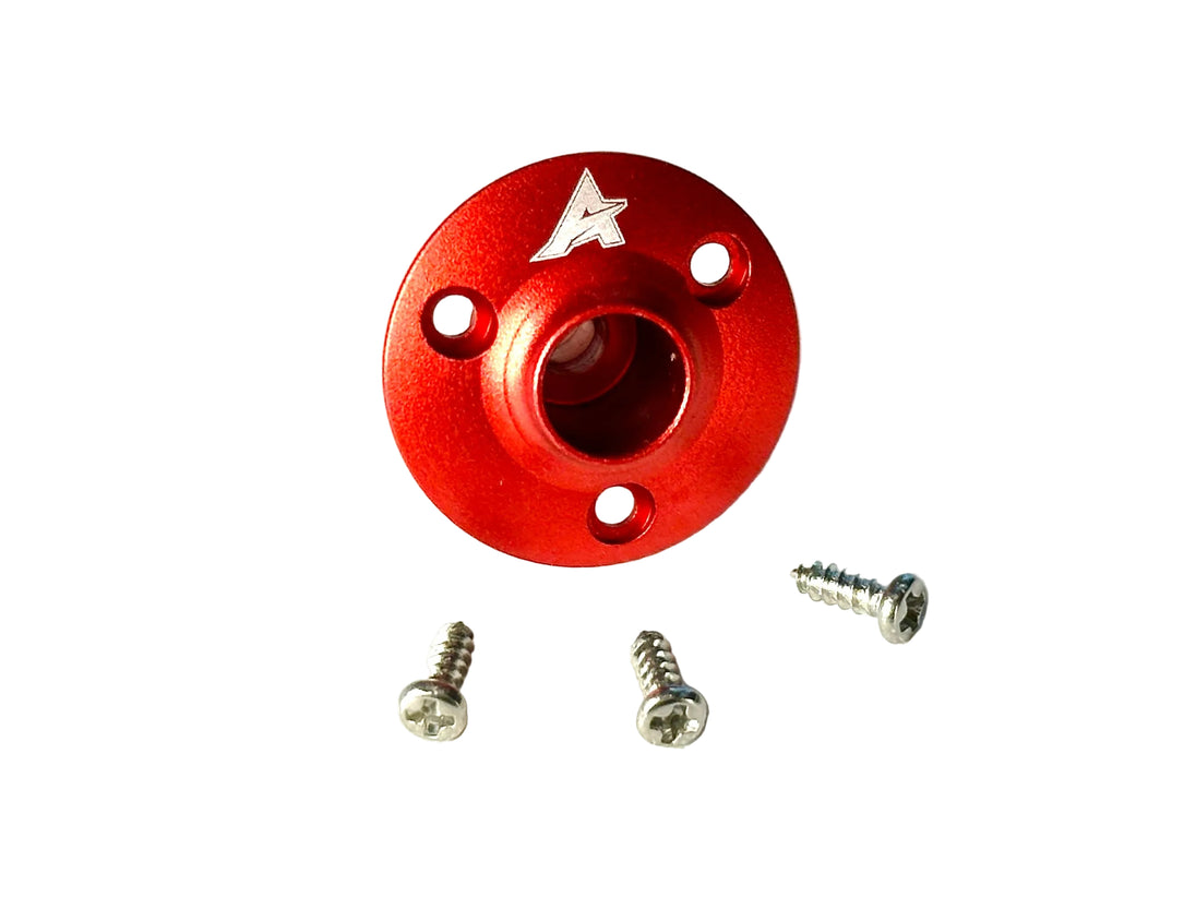 Fuel Vent Dots allow for a cleanly directed overflow exit for your vent line. Apex Aerotech aircraft have mounting provisions for this dot on the bottom of the fuselage near the landing gear. Simply use the three provided wood screws for mounting, then connect your vent line to the dot. Available in both red and silver!