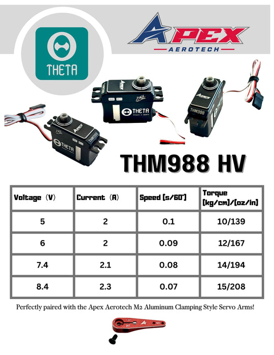 No reviewsServo performance is uncompromised with the Theta/Apex THM988 servos, delivering ample torque, instant response, and a crisp, precise feel. Please see attached spec sheet for performance info!Regular price $95.99Regular price $95.99
