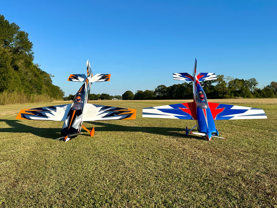 The Slick 360 is available in two Clint Sweet Design liveries: the “Banshee” Orange scheme and the “Apex” Blue/Red scheme! The "Banshee" livery is properly named to represent the character the scheme portrays. The "Apex" livery displays the brand logo color pallet being presented on our first aircraft release.